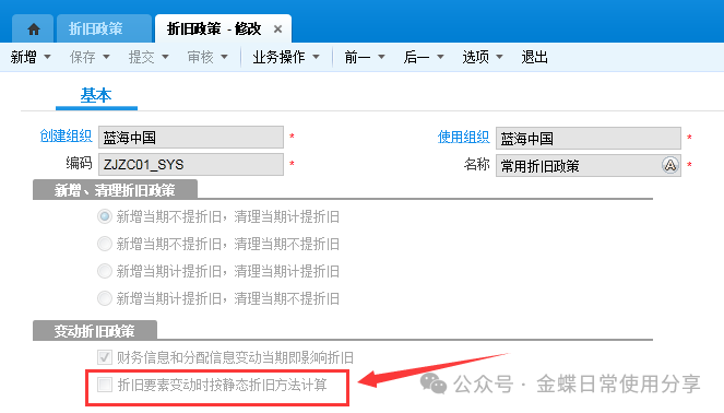 注:按变动进行折旧是不可逆操作,请根据自身情况加以选择。