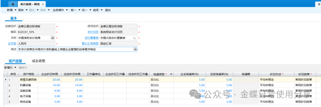 【操作说明】:包括:会计政策、会计核算体系、币别、汇率体系、会计日历、会计要素、核算维度、科目、凭证字、账簿、摘要库、结算方式、现金流量项目等,该部分公用基础资料的设置可参考总账初始化指南。