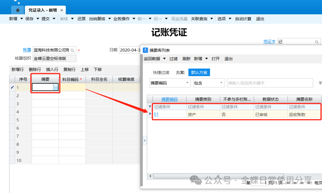 3.如果科目设置了核算维度,还需选择对应的核算维度,比如:应收账款挂了客户这个核算维度,则需要选择对应客户;