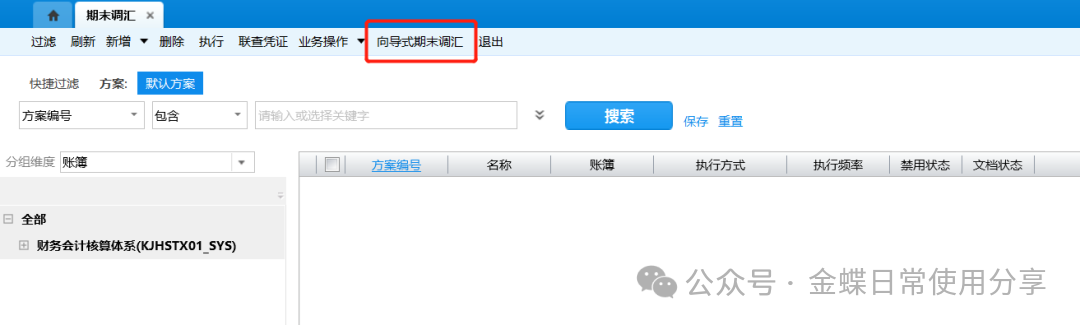 2.汇率设置、参数设置与正常期末调汇类似,具体可参考5.4期末调汇;汇率日期和凭证日期默认为调整期间所在会计年度的会计日历的最后一天,且不允许修改,选择调整期间后在其后面显示调整期间的名称;