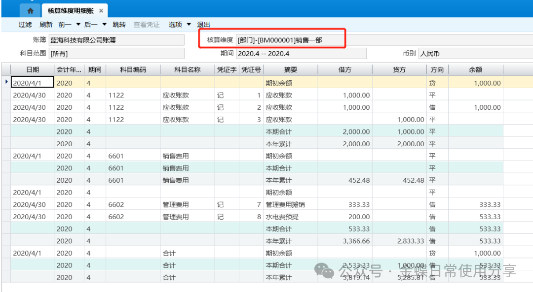 业务场景】:核算维度余额表用于帮助用户进行核算维度余额的分析,主要展示核算维度的期初余额、本期发生、本年累计发生以及期初余额数据等。