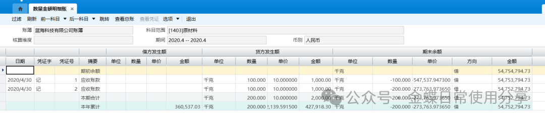 业务场景】:数量金额明细账用于查询下设数量金额的辅助核算科目的明细账务数据,包括“收入”、“发出”、“结存”的“数量”、“单价”、“金额”各项数据。