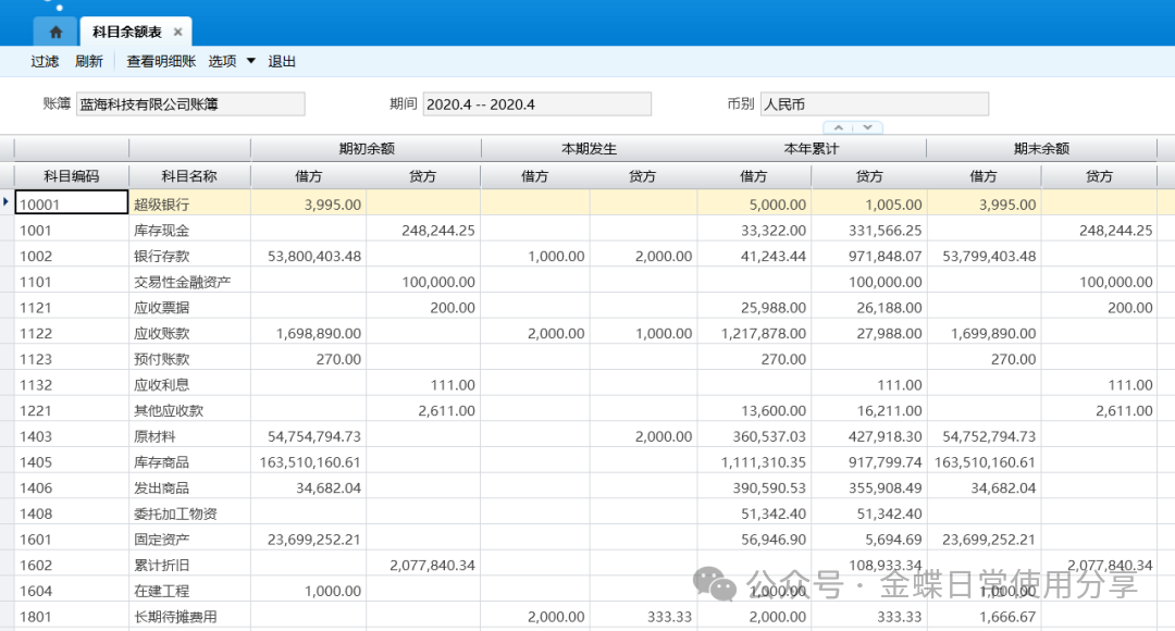 业务场景】:科目余额表是以报表形式显示各个科目的年初余额、期初余额 、本期发生额、本年累计、以及期末余额。资产负债表可以根据科目余额表编制,科目余额表里面的科目余额应当等于资产负债表科目余额。 账表设置的科目数据范围,支持按账簿的核算组织进行隔离。