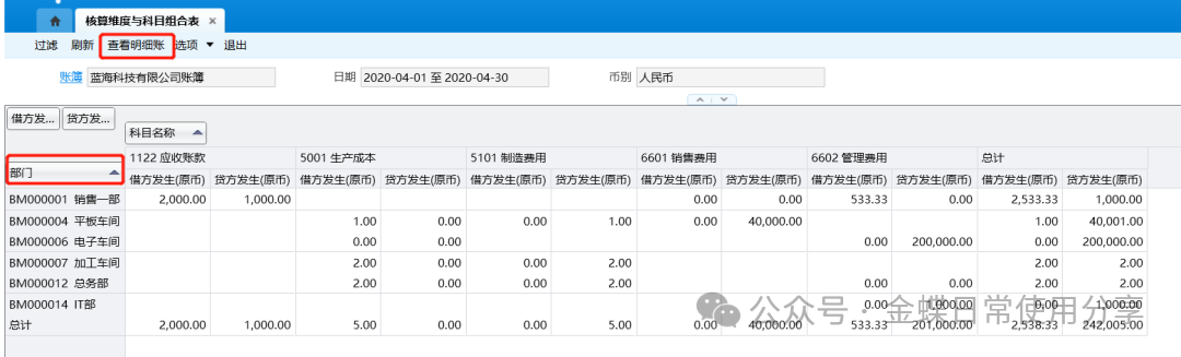 业务场景】:系统提供科目以及核算维度的多栏式明细账查询,多栏式明细账可以适用于:物资采购明细分类核算、生产成本明细分类核算以及费用项目明细分类核算等查询。