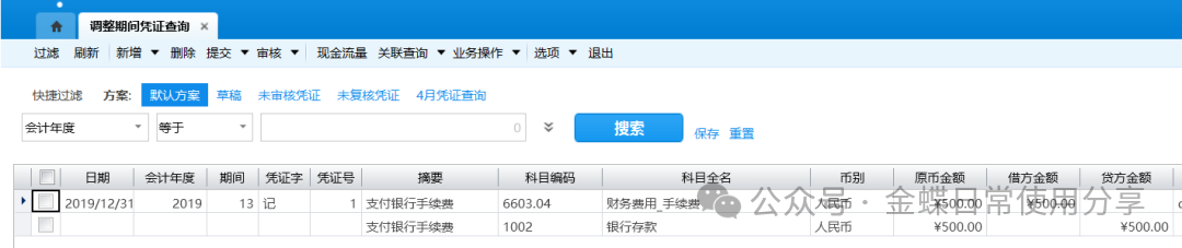 1.用户可通过“调整期间凭证查询”功能查询调整期间凭证;