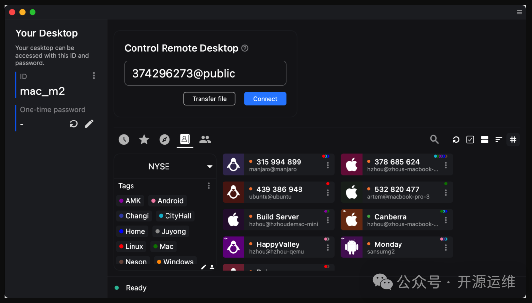 RustDesk 支持 Windows、Mac、Android、Linux 和 iOS,无论你用什么设备,都能无缝远程操控。