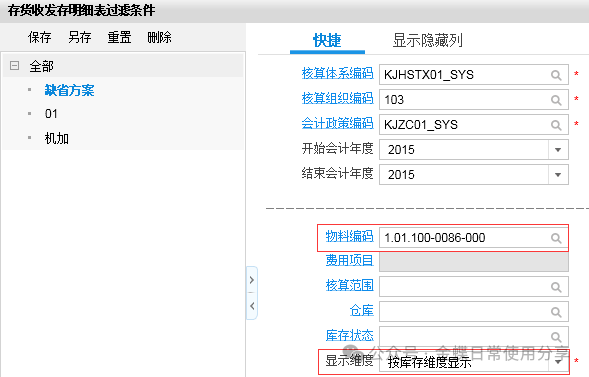 这个条件,特别是部门属性等于“基本生产部门”比较难获取,可以复制标准产品预设的“领料部门不为空且部门属性为基本生产部门参与费用分配”的规则条件,但要注意我们这里增加了一条“单据类型等于费用出库单”,否则会引起数据异常。