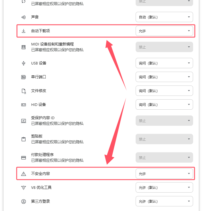 方法三:允许特定网站的不安全内容(推荐)此方法只针对您信任的特定网站(如您的内网站点