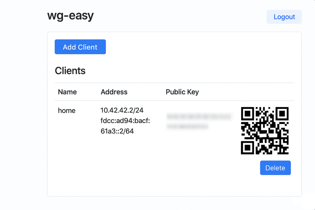 如果你想要快速拥有一套 带可视化管理界面的 WireGuard VPN,而且安装配置不要太复杂,wg-easy 就是你的不二之选。