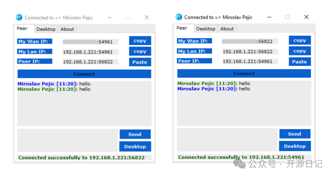 P2P Remote Desktop 是一款免费、开源的远程桌面工具,无需复杂配置,通过直接传输的点对点协议(P2P),实现安全流畅的桌面控制和消息传递功能。它更像是轻量化版的 TeamViewer,但完全免安装、免账号,随开即用!对运维人员来说,这款工具不仅可以绕过复杂防火墙配置,还零成本,直接提升工作效率!