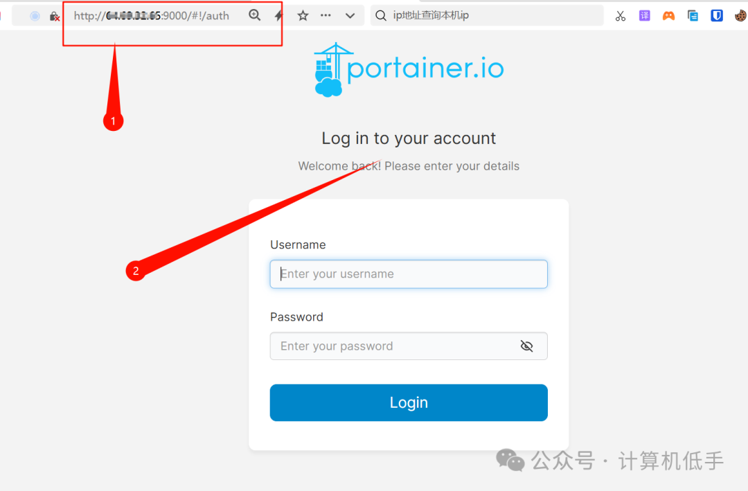- • 访问内网中的portainer容器管理服务,如下: