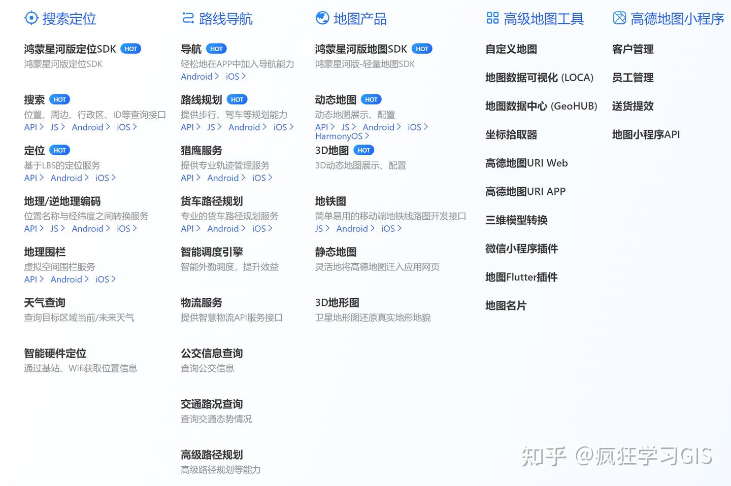 本文介绍高德、百度、腾讯、必应与天地图等 最近,一些工作需要用到地图开发API方面的内容;在此之前,我还从来没有接触过地图开发相关API的知识与实践,所以这里就对国内开发者常用的 1 高德地图开放平台1.1 功能其官网对各功能的展示如下。 ![]() 其中,包括以下常用功能。