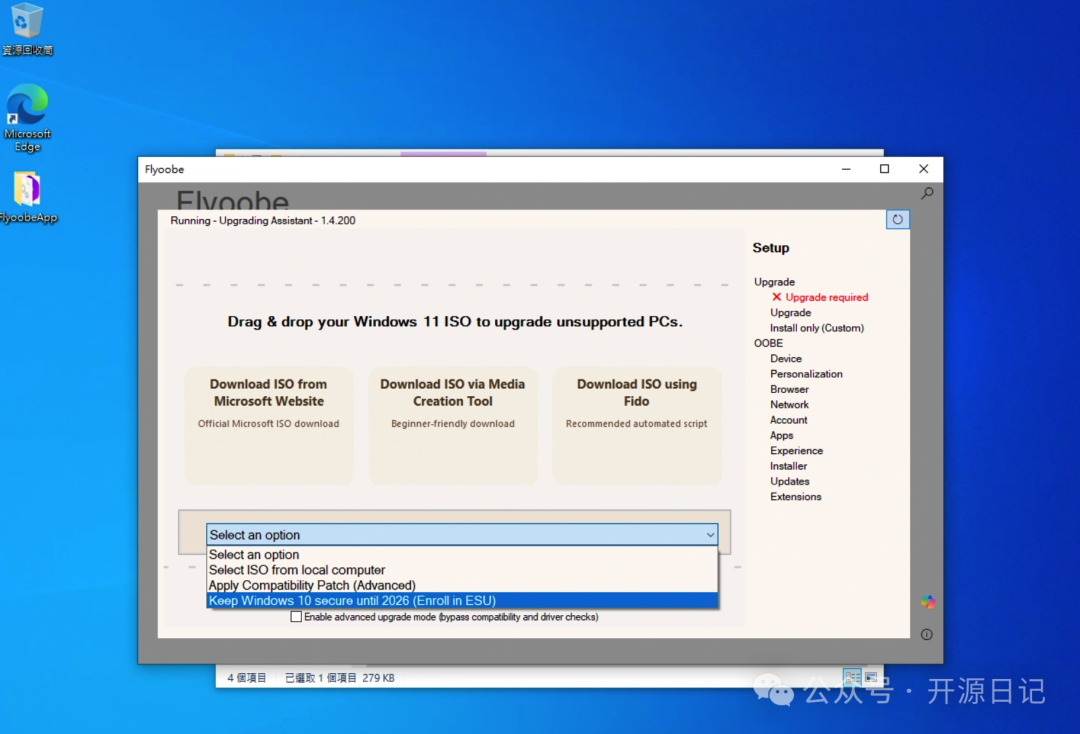 2.下载后,直接运行主程序,按照步骤选择需要升级或安装的 Windows 11 系统包。- 3.Flyoobe 会自动处理硬件校验,并提供优化选项。整个流程极简,即便是“小白”也能轻松上手。