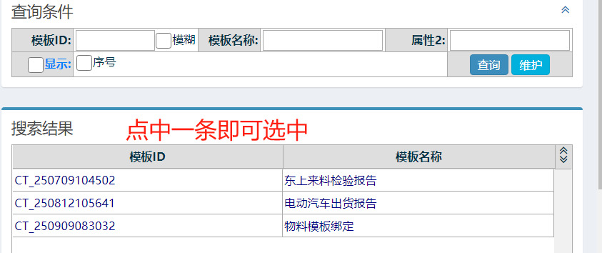 选择完物料后再选择模板 如下图: