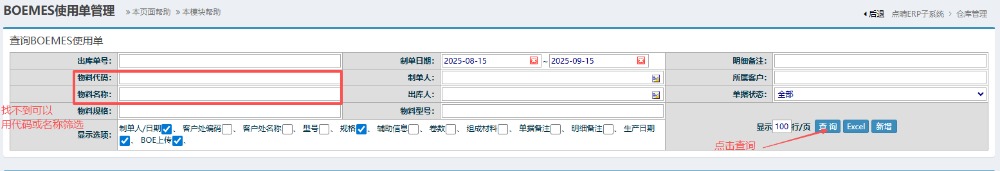 • 找不到物料可以用编码名称筛选。