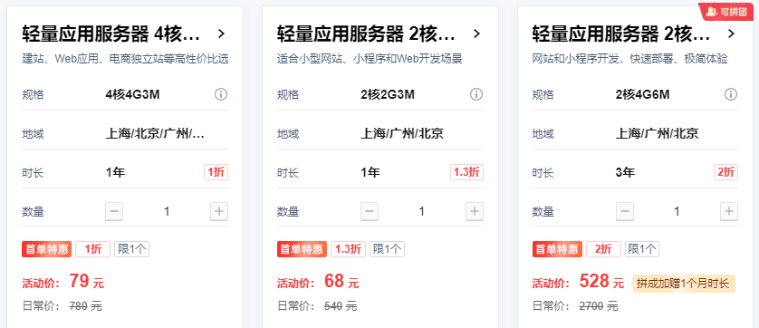 小技巧:购买后立即续费一年,可锁定当前价格,避免后续调价。 活动地址:https://t.aliyun.com/U/hekmId 二、腾讯云 —— 三年套餐闭眼入,真香警告 腾讯云近年来在配置和价格上持续加码,尤其三年期套餐,年均成本不到200元,带宽充足、性能稳定,非常适合打算长期运营项目的用户。 轻量服务器 2核4G + 6M带宽 + 50GB SSD 轻量服务器 4核4G + 3M带宽