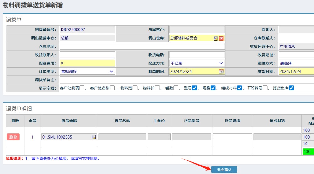 如果是卷料点击卷数,非卷料点击数量,在弹出的窗口选择库存出库