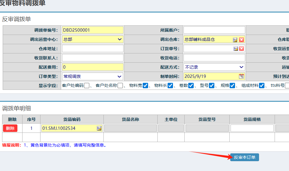 :点晴ERP-调拨出库单-反审操作![]() 点击进入 如下图;