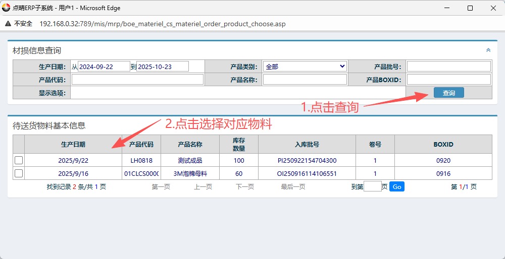 流程结束。 注:材损原材转换完后,接下来回到正常的送货流程: 点晴ERP-BOE成品送货单流程 点晴模切ERP更多信息:http://moqie.clicksun.cn,联系电话:4001861886 该文章在 2025/10/20 10:32:25 编辑过 |