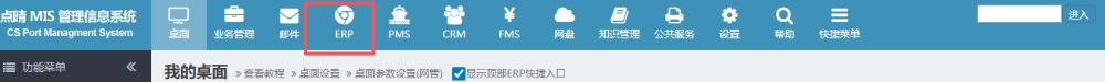2.进入ERP系统之后,在左侧或者上方的菜单内点击“ERP”。