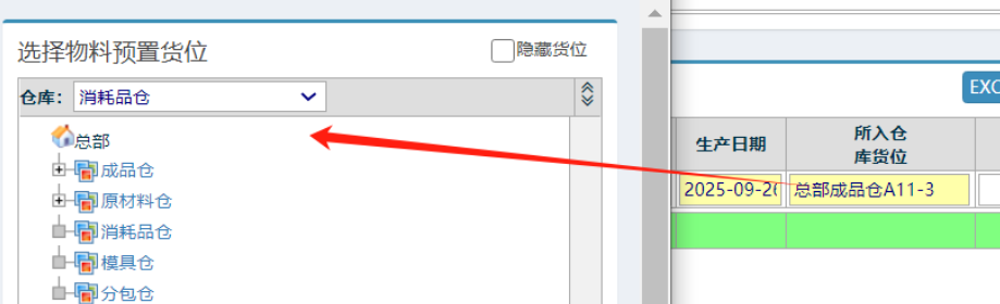 点晴模切ERP-弹出提示:物料入库货位innerid禁止=0