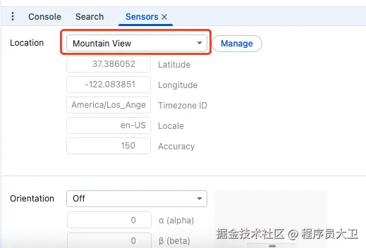 在 Location 一栏中,选择 “Mountain View”(美国山景城),即北美西海岸时区: