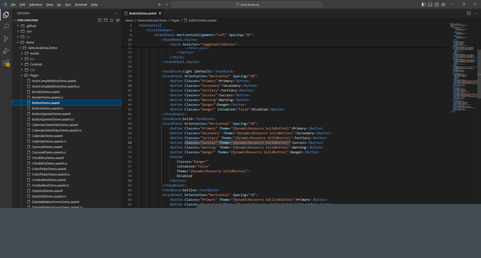 2. 找到Pages目录,打开ButtonDemo.axaml
