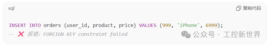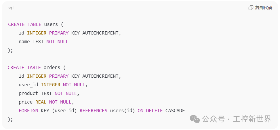 ⚠️ 注意:SQLite 默认 外键是关闭的,要显式打开: