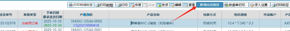 点中一条出货的物料信息后,再点击新增出货报告