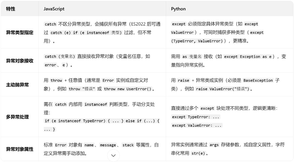 代码; //如:console.log(`异常类型:${e.name},异常原因:${e.message}`);