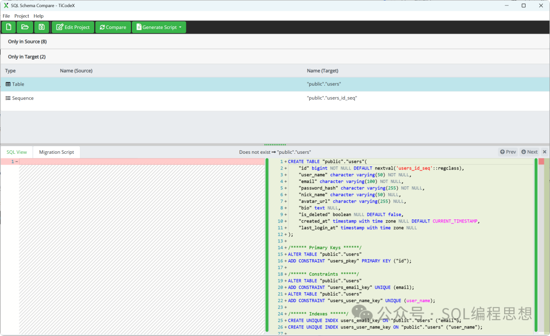 TiCodeX SQL Schema Compare 通过自动化的数据库模式比较解决了不同数据库环境之间的结构同步问题,提升工作效率的同时降低了人为错误的风险。
