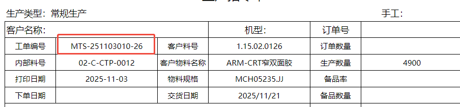 :生产指令单系统显示的工单号是正常的,但是打印出来的时候就是多了一个杠加数字是什么情况?![]()