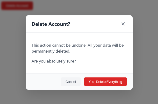 <!-- ❌ 点击空白就关掉:不适合危险操作 -->