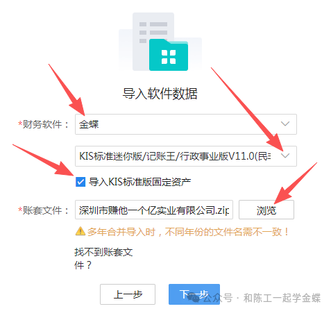 最近有一些KIS迷你版/标准版的老客户,也想升级账套到精斗云云会计但是有些人只是听说精斗云是按账套数租用的,分3个账套和10账套,价格各不一样因为想到自己公司的账可能做了多年或者有十多年了,就有十多个账套,那全部升级的话要租好多年账套的,就不划算了,刚萌生的升级想法又被浇灭了有些客户听说标准版的固定资产不能升级导入云会计,那升级过去了卡片还要手工做格式导入,比较麻烦虽然听说精斗云有各种优势,各种新功能,比如税局自动取票,发票生成凭证,拍照生成凭证,一键报税,银企互联,银行流水导入等功能,但却有各种各样的担忧1. 账套不仅可以直接导入,而且可以多年账套合并导入生成一个连续的账套,在23年11月就已经支持多年账套合并导入,不用再担心要生成多个账套占用账套数了现在我们一起来操作一下怎么把多年的账套合并导入升级成一个账套进入精斗云云会计比如现在某公司有四年的账套,账套名称如下,年结的后缀是AIY,本年的是AIS,合并的前提,账套是一直连续下来的,每年年结时生成的账套文件才行一. 我们需要把其它三年的账套的后缀修改成AIS,修改时会提示这个,点确定就行,不会损坏账套的二. 全部选中,然后鼠标右键压缩,把它压缩一个ZIP文件三. 打开软件进去,点新建账套,填好公司名称,然后点记账,点中间的导入软件数据上面财务软件选择金蝶,找到KIS迷你版/标准版,一定要记得勾上导入KIS标准版固定资产,账套文件点右边的浏览把刚才的压缩文件选择进来,点下一步有时会检测成功,那么可以直接导入,有时会检测失败,会提示是什么失败,比如有时标准版科目不小心增加的是5位数,那么就会提示失败,需要进标准版里面修改成4位数才行下一步等它导入就行,一般需要两三分钟,如果凭证多又是多年的账套,那么就等着就行,千万不能以为是卡死就直接关掉网页,这样账套就升级完成了,直接登录软件进去确认吧,多年账套合并就是这么简单注意:如果在标准版里面系统有增加了一级科目,那么资产负债表会不平,还需要去调整公式,或者资产负债表需不需要设置报表重分类,或者税费要不要进其它流动资产,到时碰到问题再处理就行!