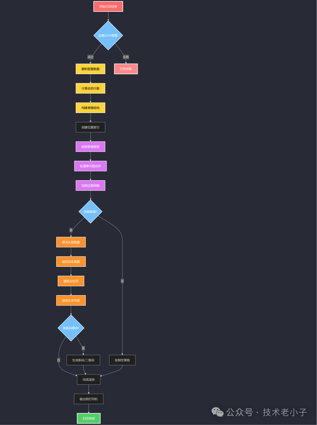 这套基于JSON配置的表格打印方案具有三个核心优势:配置灵活(JSON驱动,无需编译)、功能完整(支持合并、条码、样式)、性能优秀(缓存机制,直接绘制)。
