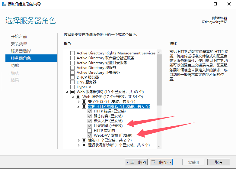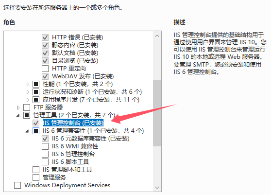• 在“角色”或“角色服务”中勾选 Web 服务器(IIS) 。
