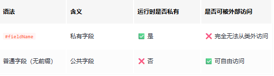 #id 是真正的私有,即使在运行时也无法绕过(除非用 Proxy 等 hack,但正常代码做不到)。