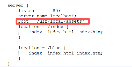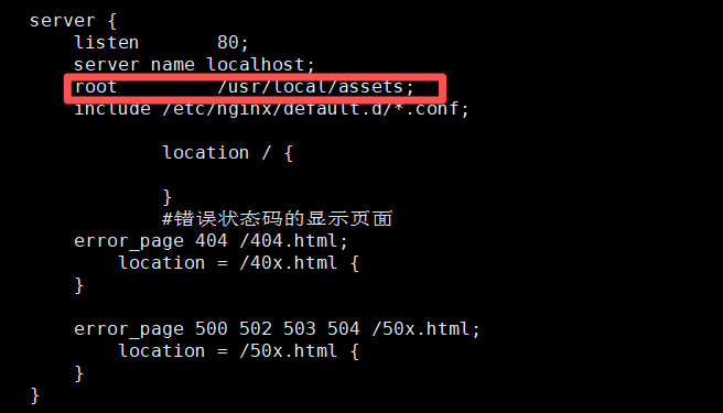 root /usr/local;  # 访问 /assets/img/logo.png 时,实际读取 /usr/local/assets/img/logo.png