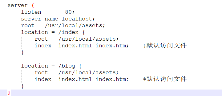 2. 精确匹配的根路径 root 默认是 /usr/share/nginx/html,你也可以自定义。比如 root 设置的路径是 /usr/local/assets,请求 http://192.168.133.128/blog,实际上获取的是 /usr/local/assets/blog 下面的 index.html。