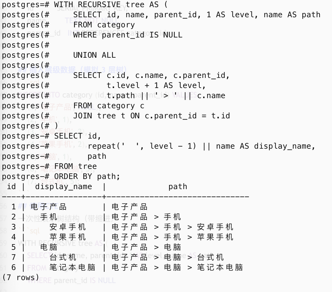 下面我们跑一遍在 PostgreSQL 里执行的示例: