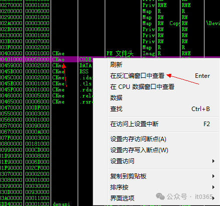 同样和前面一样,查看内存快捷 ALT+M,选择程序的CODE段右键,
