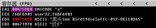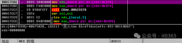 ds:[00471C90]=00475828, (ASCII "黑头Sun Bird11dseloffc-012-OKit0365")
