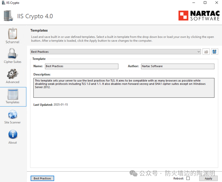 IIS Crypto 提供多个预设模板: