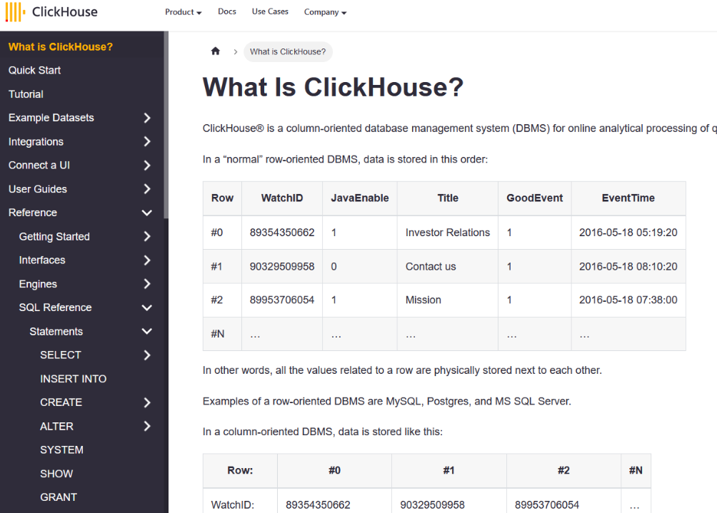 • 一句话认识它:如果你的核心痛点是需要对超大规模数据集进行快速的交互式查询和分析,ClickHouse的性能优势非常明显。