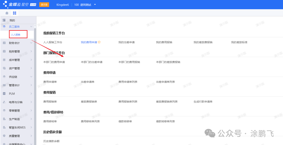 ![]() 接下来我们将从系统的每个菜单进行一个简要的功能解释和系统截图的框架对金蝶云星空的整体功能进行一个介绍! 员工服务