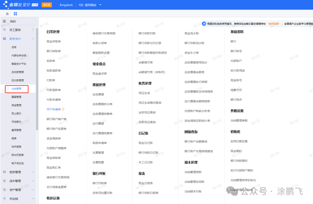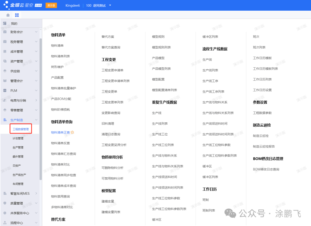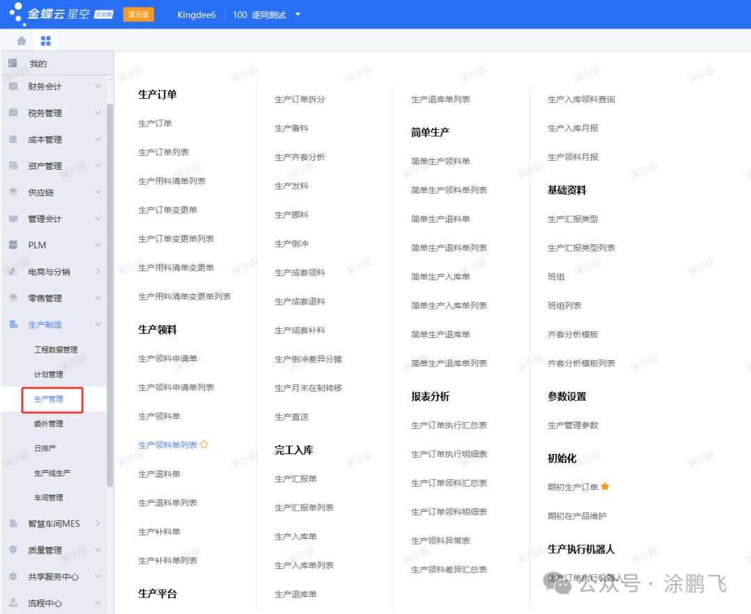 我们先看下金蝶云星空的主页和菜单界面