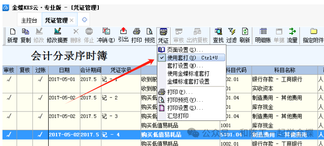 三. 软件里面参数设置 现在我们再进入软件里面,打开凭证管理,过滤出需要打印的凭证出来 首先这里有一个概念叫使用套打