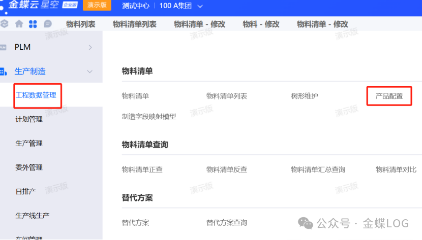 第六步:进行【产品配置】,生成具体BOM 上面步骤操作完之后,就可以开始真正的BOM配置了。找到【产品配置】点开来