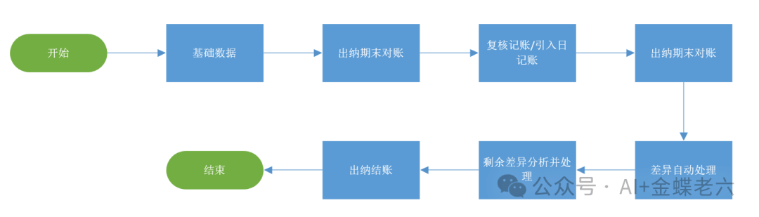 业务流程图展示了出纳期末对账的核心步骤,具体如下: