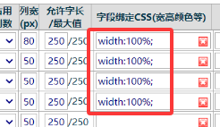 ![]() ![]() 注意增加自定义字段时,有一个“字段绑定CSS(宽高颜色等)”属性设置: ![]() 在里面加入CSS控制代码:“width:100%;”即可,保存后,就会看到该字段宽度撑满整个单元格了。